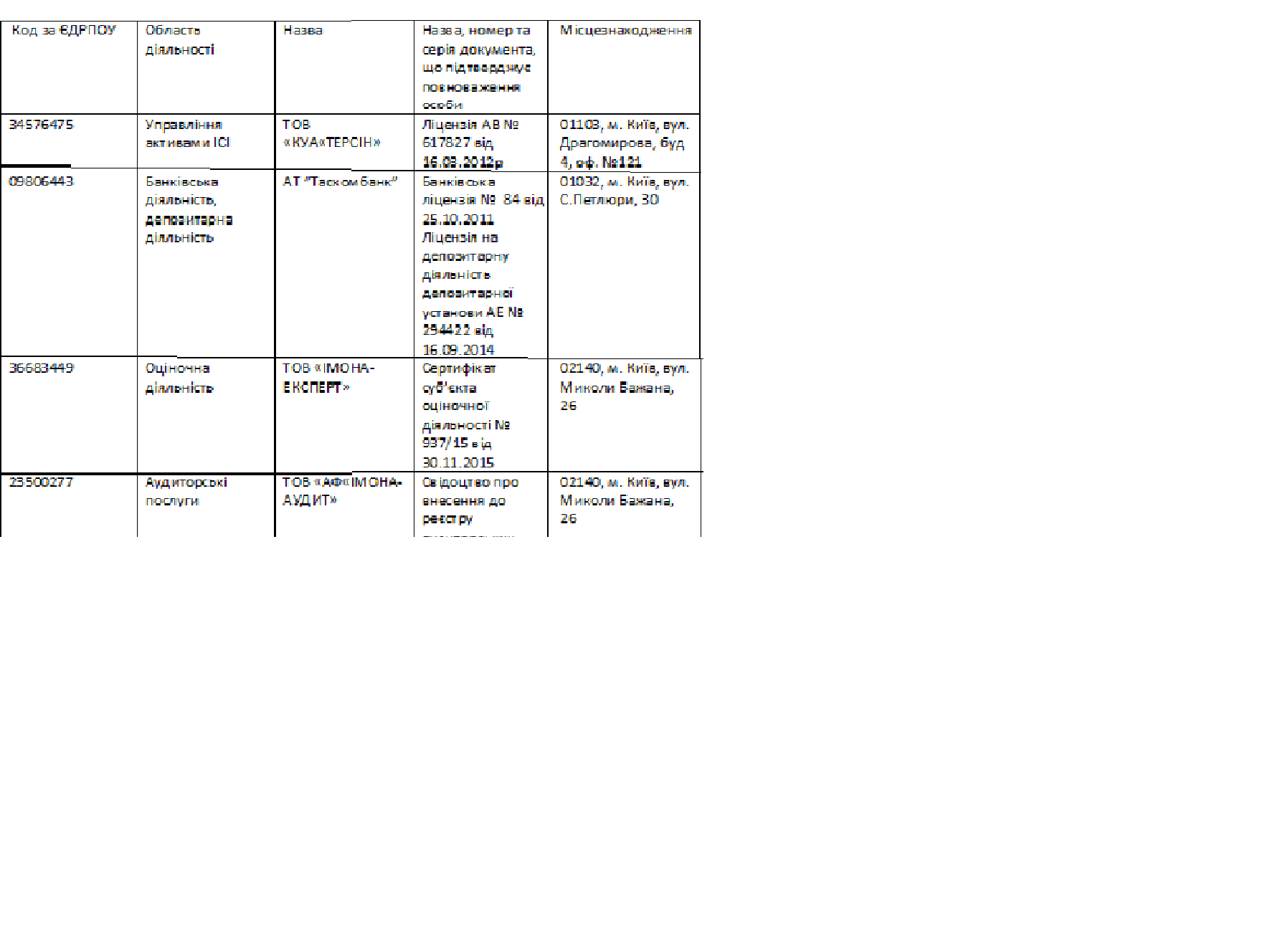 про внесення до єдиного державного реєстру інститутів спільного інвестування. Реєстраційний код за ЄДРІСІ 233632 . Дата внесення до ЄДРІСІ 25.04.2007.